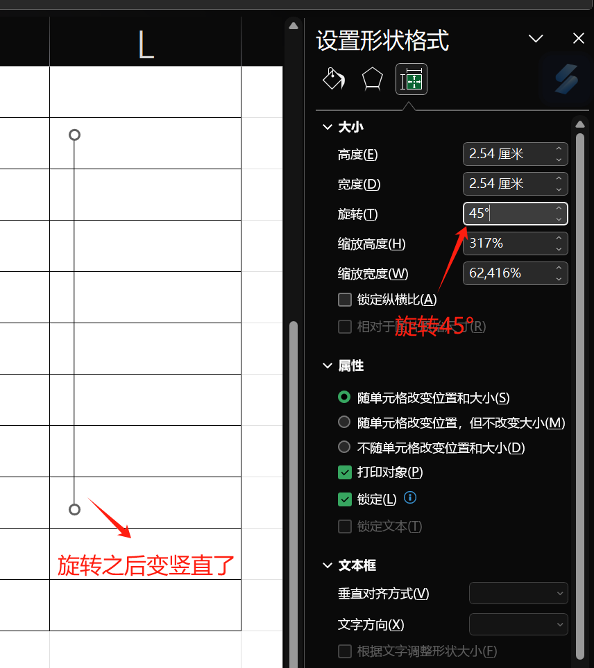 excel 和 word 怎么把单元格竖线错开,任意移动 咸鱼 2年前 word:1.首先选中单元格2.鼠标放在单元格中间的竖线上3.按住鼠标左键即可以左右移动 excel:1.选择插入--->形状---线条---直线 2.选择颜色:黑色 ; 宽度:0 磅,如果打印的话,宽度选择1磅(这样会没什么明显的差异)。3.旋转45° ,调整为竖线4.移动到合适的位置插入 2 0 576 4