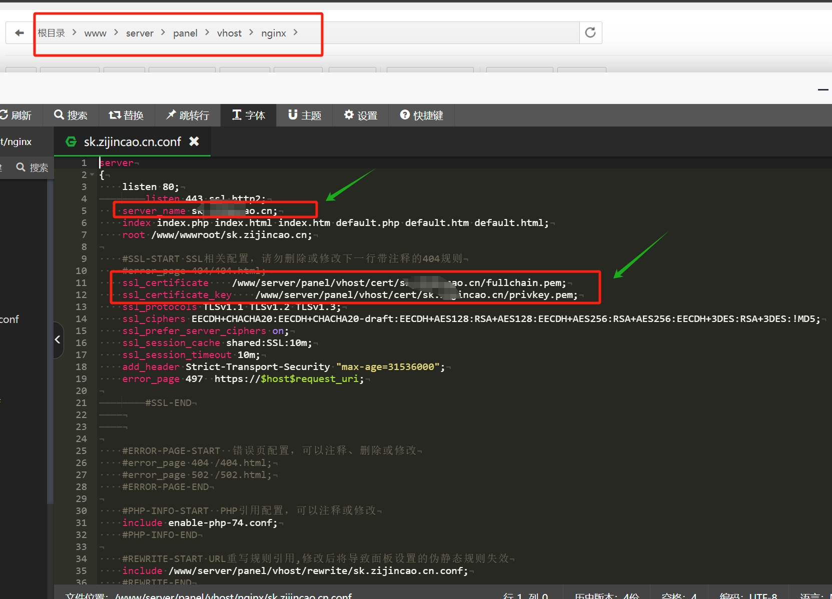 1.先新增需要访问的域名2.每个域名都申请ssl3.把申请到的证书放到宝塔的证书文件夹(一个域名新建一个目录)4.找到本网站的NG配置文件,复制server的内容,如图所示修改这三个地方,其他的不用改5. 重启Nginx 。 以下为一个站点双域名SSL证书部署方案实例。 server { li...